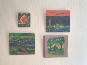 おはようございます❣️ 昨日は、一日中、ギャラリーの展示会番でしたが、今回の川田美緒さんの水彩画と油絵、とても、ふんわりとして、癒しの絵です。 特に大判の2枚しか無い油絵は、不思議な感じの絵でとても惹かれました。 水彩画…