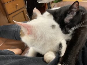 今晩わ❣️ 今日は本当にどんよりと言う言葉がぴったりのお天気でしたね。 朝方トイレに起きた後,部屋に戻ると、テテがベッドの上で、ミャ〜ミャ〜泣いている。 ここの所、私はうちの二匹と一緒には寝て…