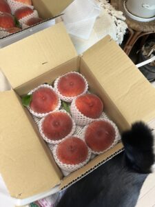 こんばんわ❣️ 今日は朝から洗濯物を干したり、撮影会のためのセット写真を撮ったりと、何かと忙しくしていたところに、,,,宅急便屋さん、、、、。 頼んでいた桃が、果樹園から届きましたɶ…