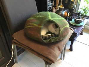 おはようございます😃 陽射しが部屋の奥まで入ってきて、心地よい朝です❣️ 買った年には良く入って寝てくれていたのに、それから何年、全く興味を示さなかっったってうちのみみたん。 何がどうしたのか今年はここで…
