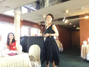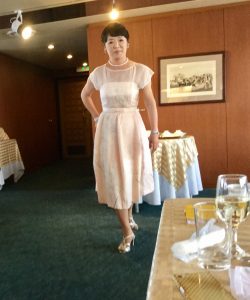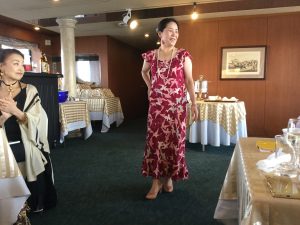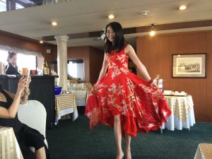 ショーのフィナーレを飾ったのは、長身のSさんに来て頂いた、この赤いドレスです。 ドレスの下には 花嫁さんが着る赤い地柄のある、長襦袢のペティコートを着ています。 裾のボリュームが豪華さを更に引き立てています。 このドレス…
