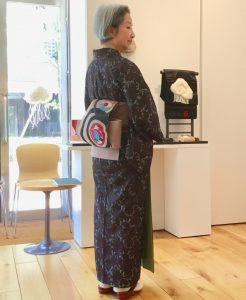 展示会中2日目、珍しい銘仙柄のお着物が、手に入ったので、お着物姿で、お客様をお出迎え。 黒っぽい雲のような、、、一見、不気味な❓柄。笑。妖の世界にはぴったりかもですが、、、、。 着物は、本当に面白いですね。帯は自作の、一…