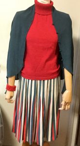 このスカートは、長襦袢でした。 昔の方達は、こんな派手な、長襦袢を着ていたのですね〜〜、、、、赤と、エメラルドグリーンと、オフホワイトの組み合わせなんて、想像もつきません。草木染めだから許される組み合わせでしょうか❓ 縞…
