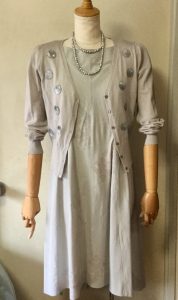 遠く夜景の様な柄の羽織でした。 地色に近いオーガンジーを被せて、透明感のあるツーピース作ってみました。 羽織っているのは、シビラのカーディガンです。 特に如何というデザインではないのですが、この時期を問わず出番の多いツー…