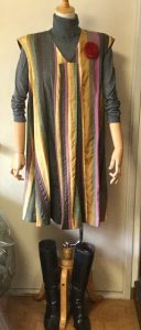 究極のパッチワークと言えば、そのストライプを生地をはいで作るという事でしょうか❓ このワンピースは、一個一個、細いテープをはいで、ストライプを作っています。 二度と、やりません❣️笑、裁断も大変なら、縫う方も大変、縫う箇…