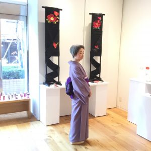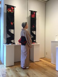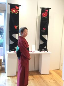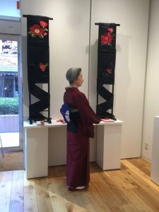 とうとう、始まりました❣️『紅・緋・赤』会開場を待つ方もいらして嬉しい限りです。 さて4時からは、オープンングパーティも始まります。今からでも、遅くはないですよ〜〜 この六日間、前回『和のわ』展で、展示した帯を実際に締め…