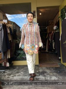 着物の残布を裂いて編んだ楽しいセーターです❣️ 着物地の使い方として、残った布を裂いて細いテープにし、セーターを編む❗️ということができます。 捨てる所はないですよ。ゴミを出さない❗️と言うことで、やっていますが、、、、…