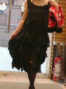 顔のない画像で失礼いたします。何年か前の三越ガーデンプレイスでの 展示会と、ファッションショーの時知り合いが撮ってくれた画像です。 個人的に気に入っています。笑。 黒いドレスのフレア感や、ブルゾンのシルエットが、強調され…