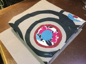 古い一重の、帯に、着物の端切れで、アップリケ❣️