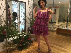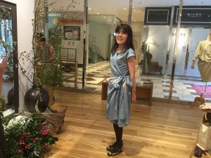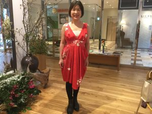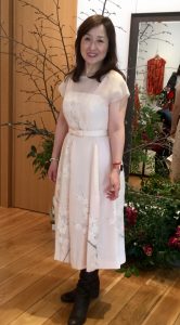 お友達の結婚式‼️ 皆さんは如何されますか❓ 私の友人のそのまた友人のお嬢さんから結婚式にお呼ばれした時に着るかもしれないドレスを、オーダー頂きました❗️ 今日は展示会場で、仮縫いです❗️ お母様から頂いた反物を、着物に…