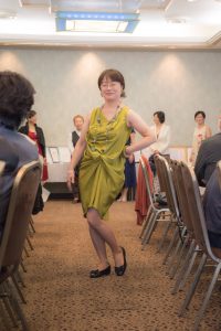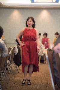 先日の朝会での、ミニファッションショーの、ひとコマです。 実はこのワンピースは、吉祥寺コレクション、通称吉コレで、こちらのIさんに、モデルとしてきていただいたものです。最初着た事の無い色、と、抵抗があったようなのですが、…