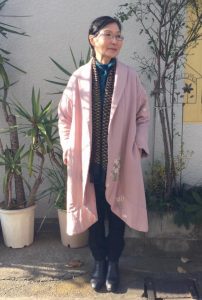 昨日のお客様、Aさんが、ご紹介くださったのが、此方のFさんです。 こちらのFさんとのご縁は、ちょっと、面白いものがあります。 着て頂いているコートは、7,8年程前、渋谷の東急本店で、3人の着物服デザイナーとの共演で、源氏…